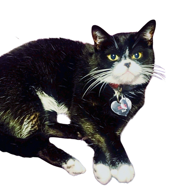 ZiZi is the office princess. Her daddy calls her "Zucifer", and her mama calls her "Zoodle Poodle" or "Zoodles." She doesn't ask for much, but when she demands pets or treats, you better abide or she's going to scream at you all day. As Mariana's support specialist, she makes sure that morning snuggles are given and that mama's chair stays nice and warm by her sleeping on it. She is so persistent in being involved at Mariana's side, that the artist workstation now has a special pillow for her to rest, so work can be accomplished. Her favorite place to be is in Mama's lap, perched on her shoulders like a parrot or on Daddy's chest.